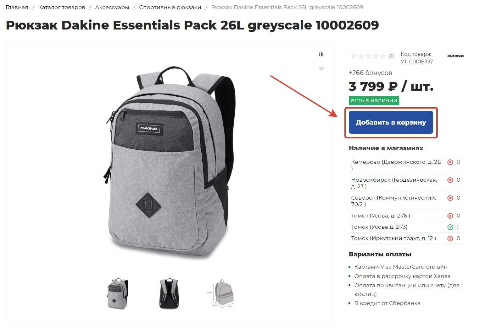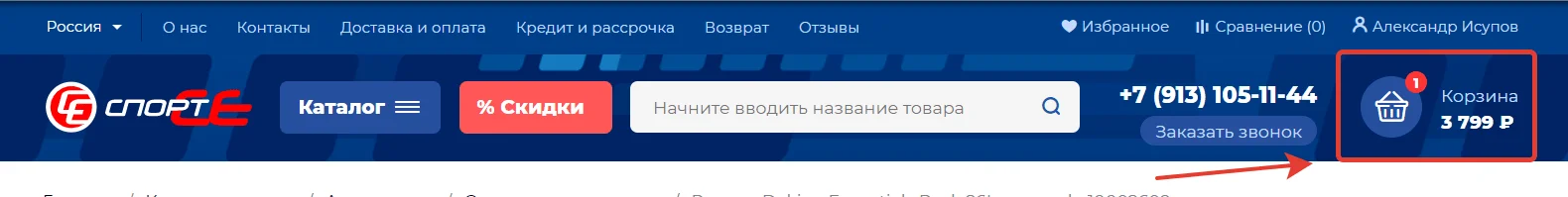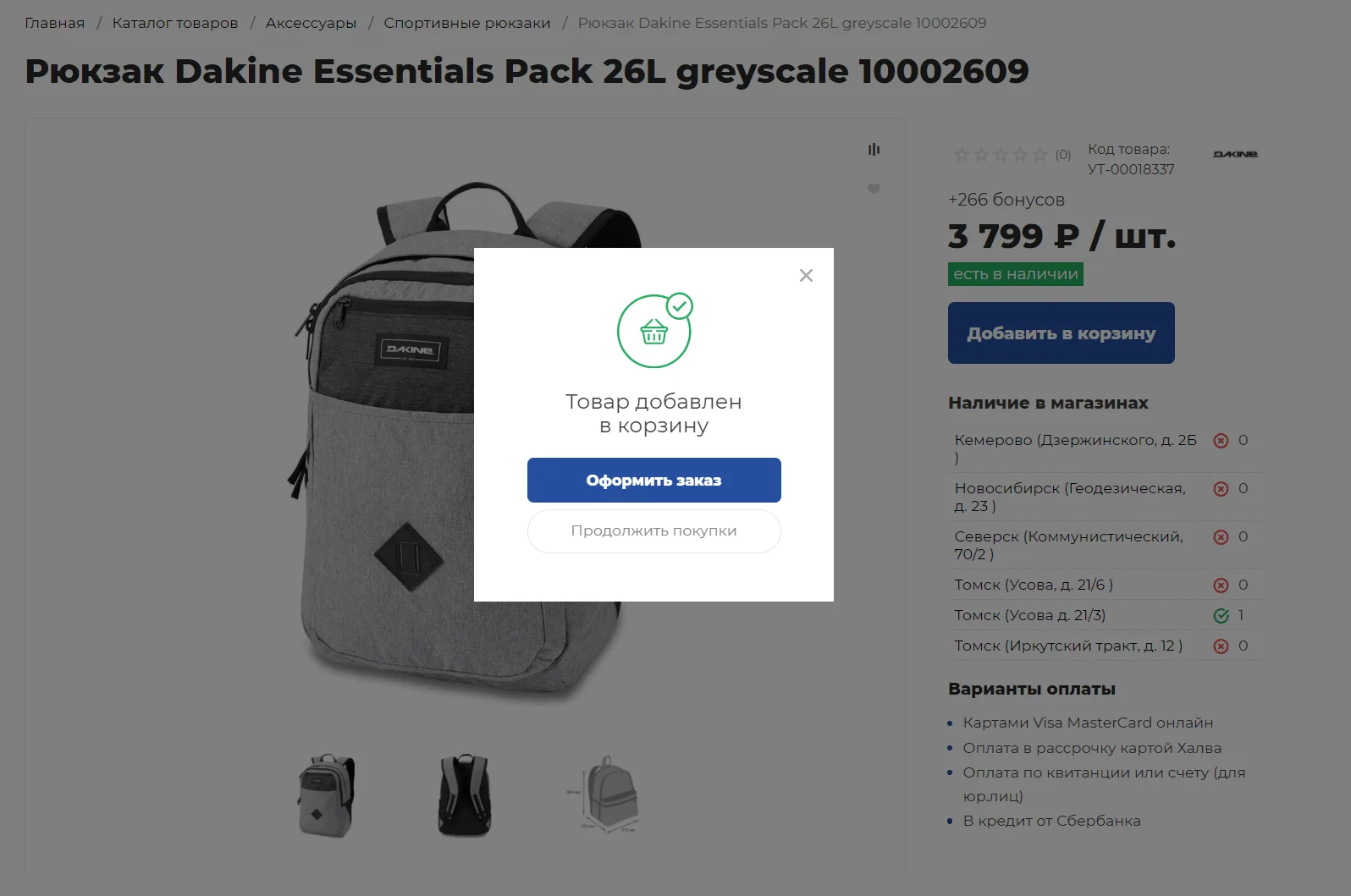 Для продолжения оформления заказа перейдите в «Корзину». По клику в всплывающем окне на кнопку «Оформить заказ» в карточке товара: