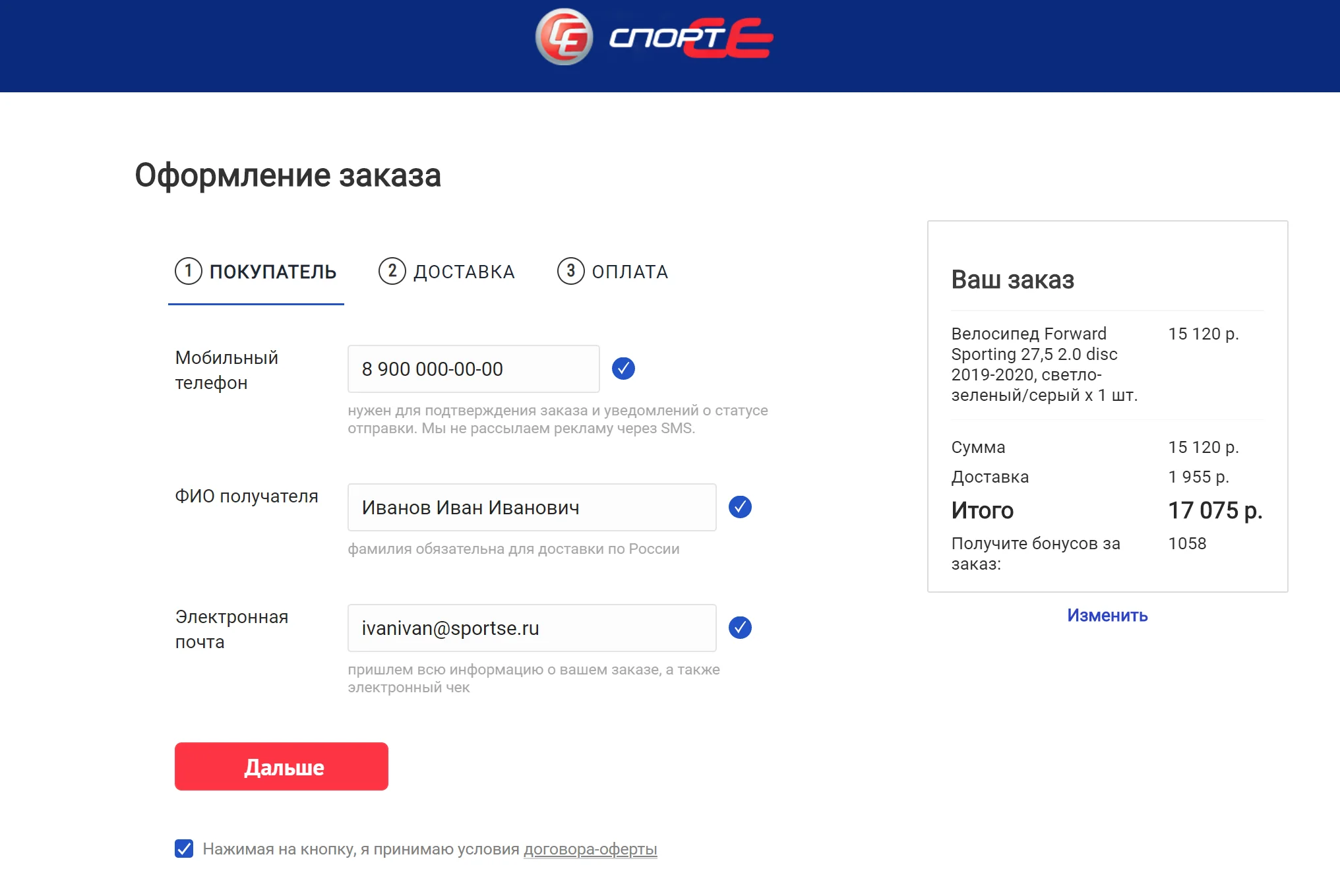 Заполните следующие поля - Ваш телефон, ФИО и электронную почту. Телефон необходим для авторизации на сайте и входа в личный кабинет, также на него поступит уведомление о статусе заказа. Мы не занимаемся рассылкой рекламы и спама, а также гарантируем безопасность передаваемых данных.